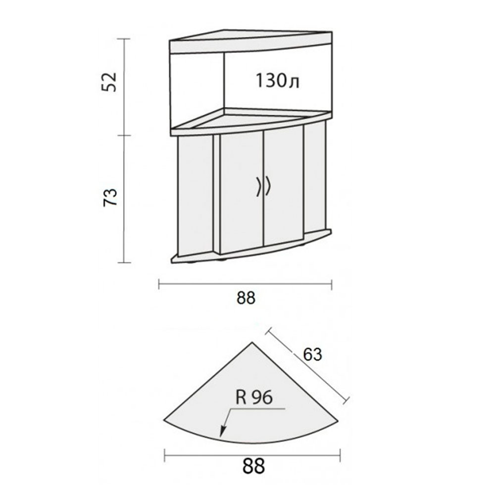 Базовый комплект состоит из аквариума, светильника и тумбы с дверями из ламинированного ДСП (ЛДСП). Фактический объем аквариума составляет 130 литров. Габариты аквариума 89x53x52 см. см. (ДхШхВ). Каждый аквариумный комплект Диарама – это базовая модель, в которой Вы имеете дополнительную возможность выбрать:- Цвет отделки аквариума и тумбы с дверями;
