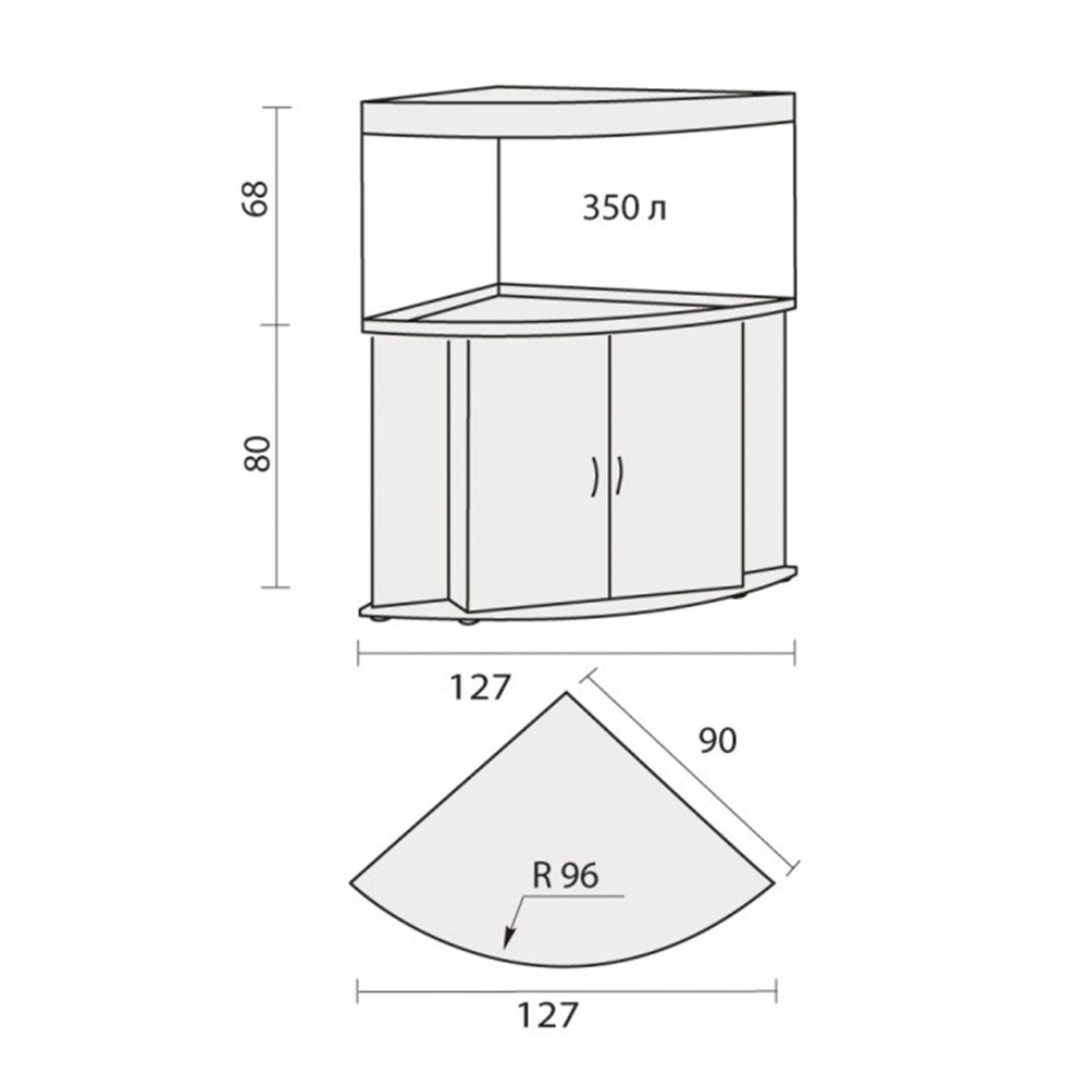Базовый комплект состоит из аквариума, светильника и тумбы с дверями из ламинированного ДСП (ЛДСП). Фактический объем аквариума составляет 350 литров. Габариты аквариума 129x91x68 см. (ДхШхВ). Каждый аквариумный комплект Диарама – это базовая модель, в которой Вы имеете дополнительную возможность выбрать: