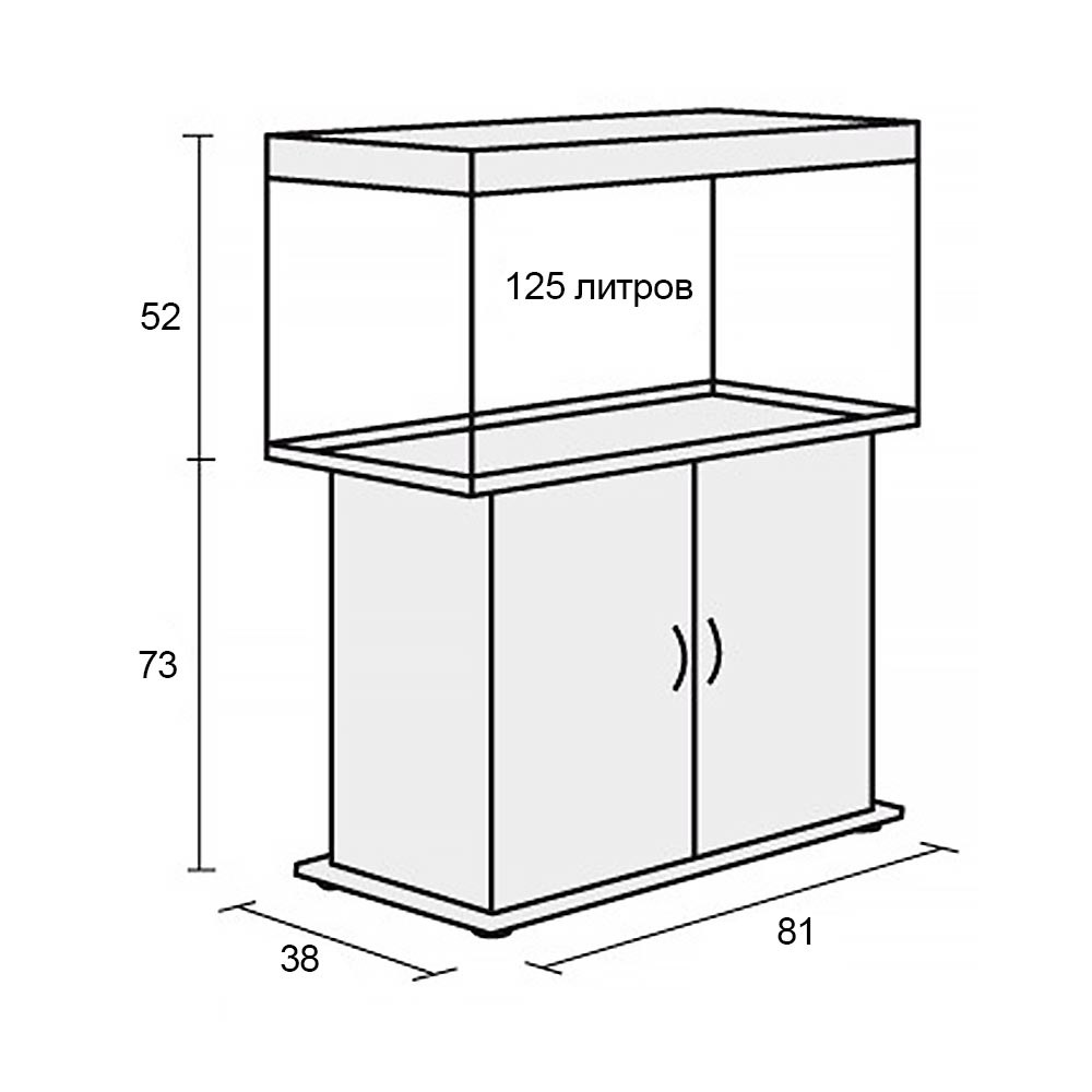 Базовый комплект состоит из аквариума, светильника и тумбы с дверями из ламинированного ДСП (ЛДСП). Фактический объем аквариума составляет 125 литров. Габариты аквариума 81x38x52 см. (ДхШхВ). Каждый аквариумный комплект Риф – это базовая модель, в которой Вы имеете дополнительную возможность выбрать: