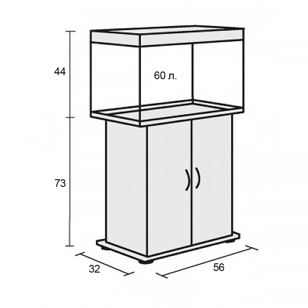Базовый комплект состоит из аквариума, светильника и тумбы с дверями из ламинированного ДСП (ЛДСП). Фактический объем аквариума составляет 60 литров. Габариты аквариума 56х32х44 см. (ДхШхВ). Каждый аквариумный комплект Риф – это базовая модель, в которой Вы имеете дополнительную возможность выбрать:
