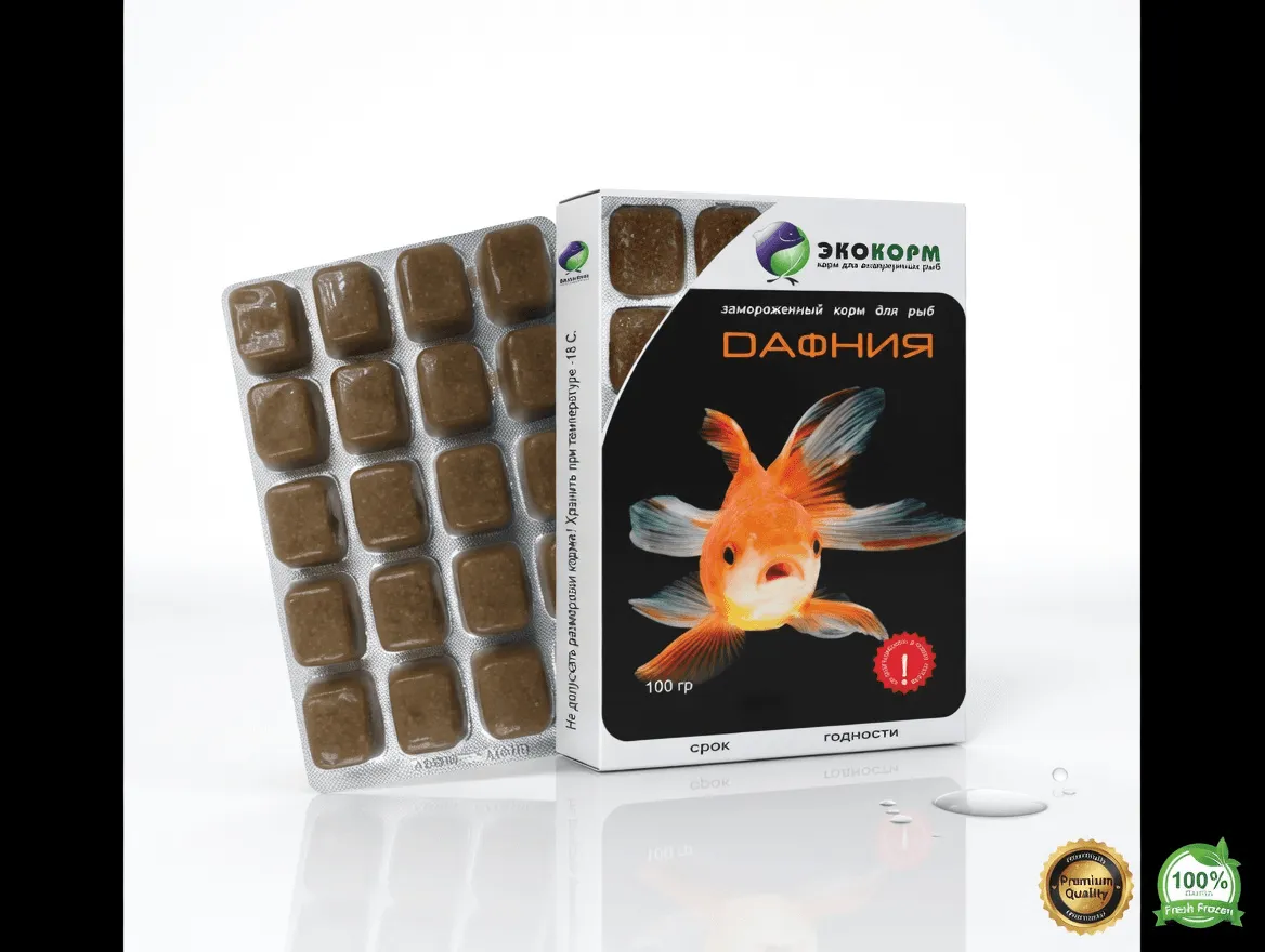 Замороженный корм для рыб Экокорм Дафния, блистер 100г — корм для аквариумных рыб для регулярного кормления.