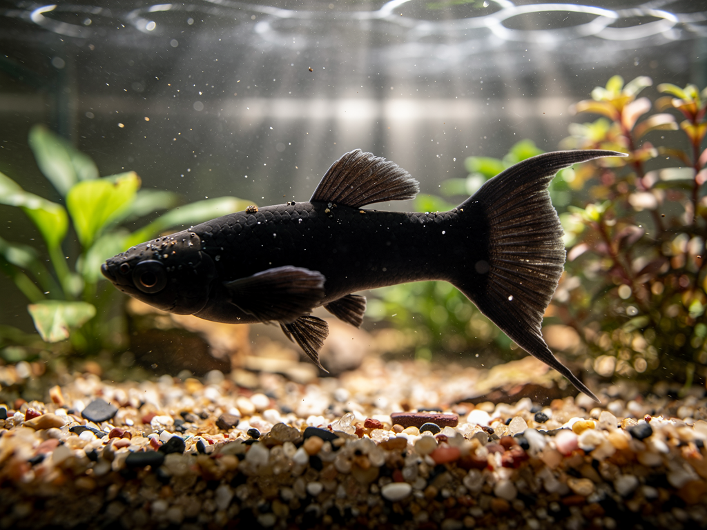 Молинезия Чёрная Лира чаще выбирают для аквариумов, где важны предсказуемые условия содержания. По характеру это мирная активная рыба. Ориентировочный размер взрослой рыбы: до 8-10 см. Минимальный объем аквариума: от 60 л.