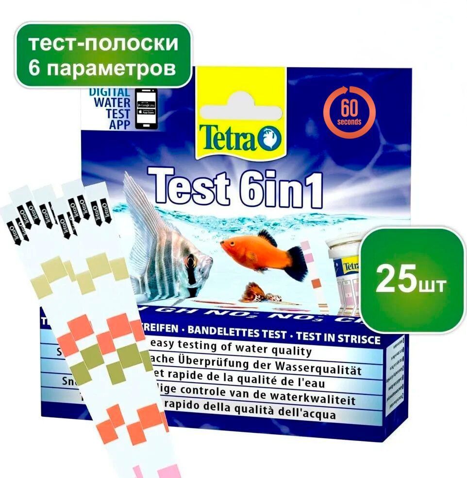 Тест 6 В 1 Gh/kh/no2/no3/ph/cl Полоски Для Пресной Воды 25шт — тест для контроля параметров воды.