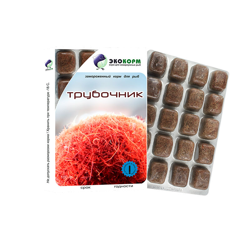 Замороженный корм для рыб Экокорм Трубочник, блистер 100г — корм для аквариумных рыб для регулярного кормления.